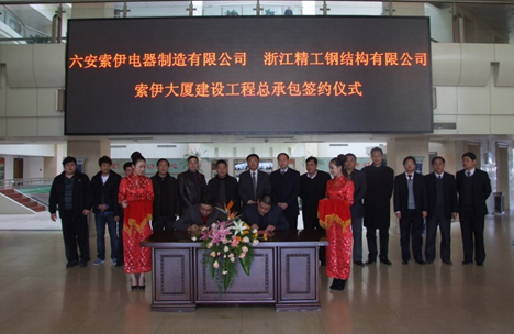 2011年2月23日上午11時,六安索伊電器制造有限公司與浙江精工鋼結構有限公司在六安經濟技術開發區管委會就索伊大廈建設工程總承包正式簽訂合作協議。 索伊電器董事長王瓊峰、行政總監程建榕、李曉泉、聶厚寶、孫玉勝,浙江精工...