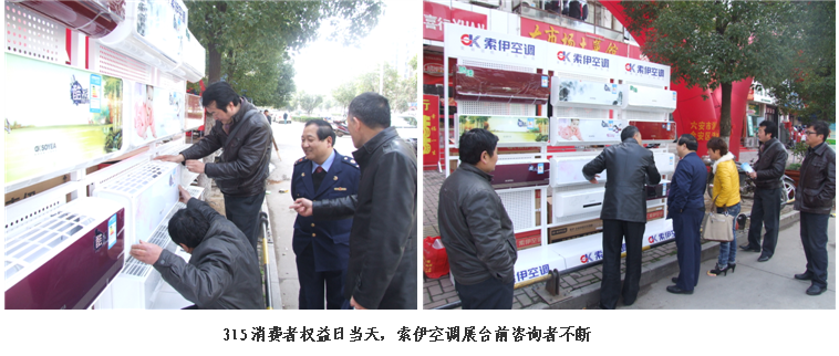 陽春三月,一年一度的315國際消費(fèi)者權(quán)益日儼然到來,各大廠家紛紛以315為契機(jī),開展著現(xiàn)場產(chǎn)品咨詢、售后銷售維權(quán)等宣傳推廣活動(dòng)。在3月15日當(dāng)天,每個(gè)城市的繁華街道都會(huì)處處洋溢著濃厚的“消費(fèi)與維權(quán)”氣氛。值此315來臨之際,索伊電器公司傾情奉獻(xiàn),將2013年索伊品牌的新品空調(diào)展示給家鄉(xiāng)的消費(fèi)者們。在市場的“信”者中,索伊電器承擔(dān)更多是家鄉(xiāng)的責(zé)任和擔(dān)當(dāng),在不斷滿足全國市場消費(fèi)者需求的同時(shí),為家鄉(xiāng)經(jīng)濟(jì)建設(shè)的提升起到了舉足輕重的作用。