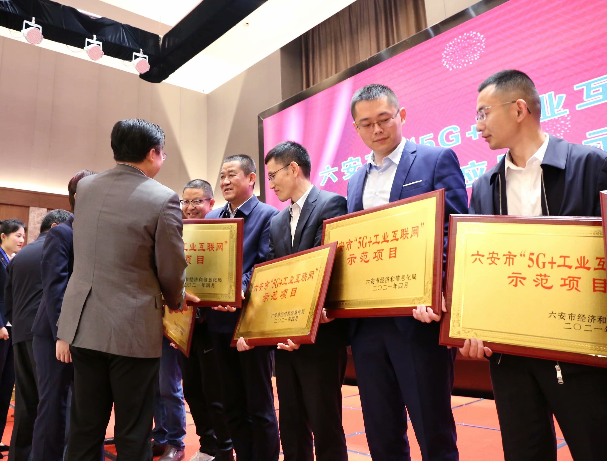 六安市“5G+工業(yè)互聯(lián)網(wǎng)”示范項目獲獎單位合影