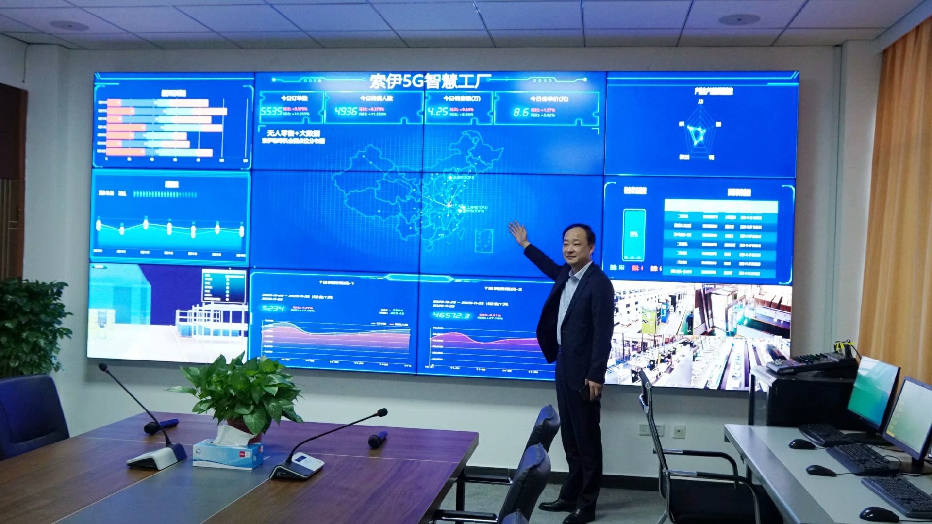 董事長助理倪曙東在5G智慧工廠控制室介紹5G項目