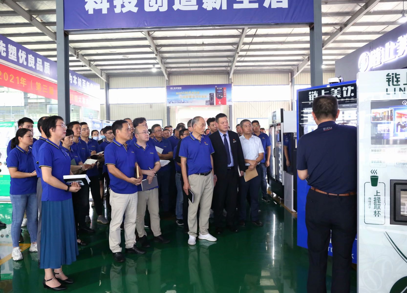 王瓊峰董事長在智能制造車間現(xiàn)場講解以烹飪機(jī)器人為代表的索伊各類智能數(shù)字化產(chǎn)品