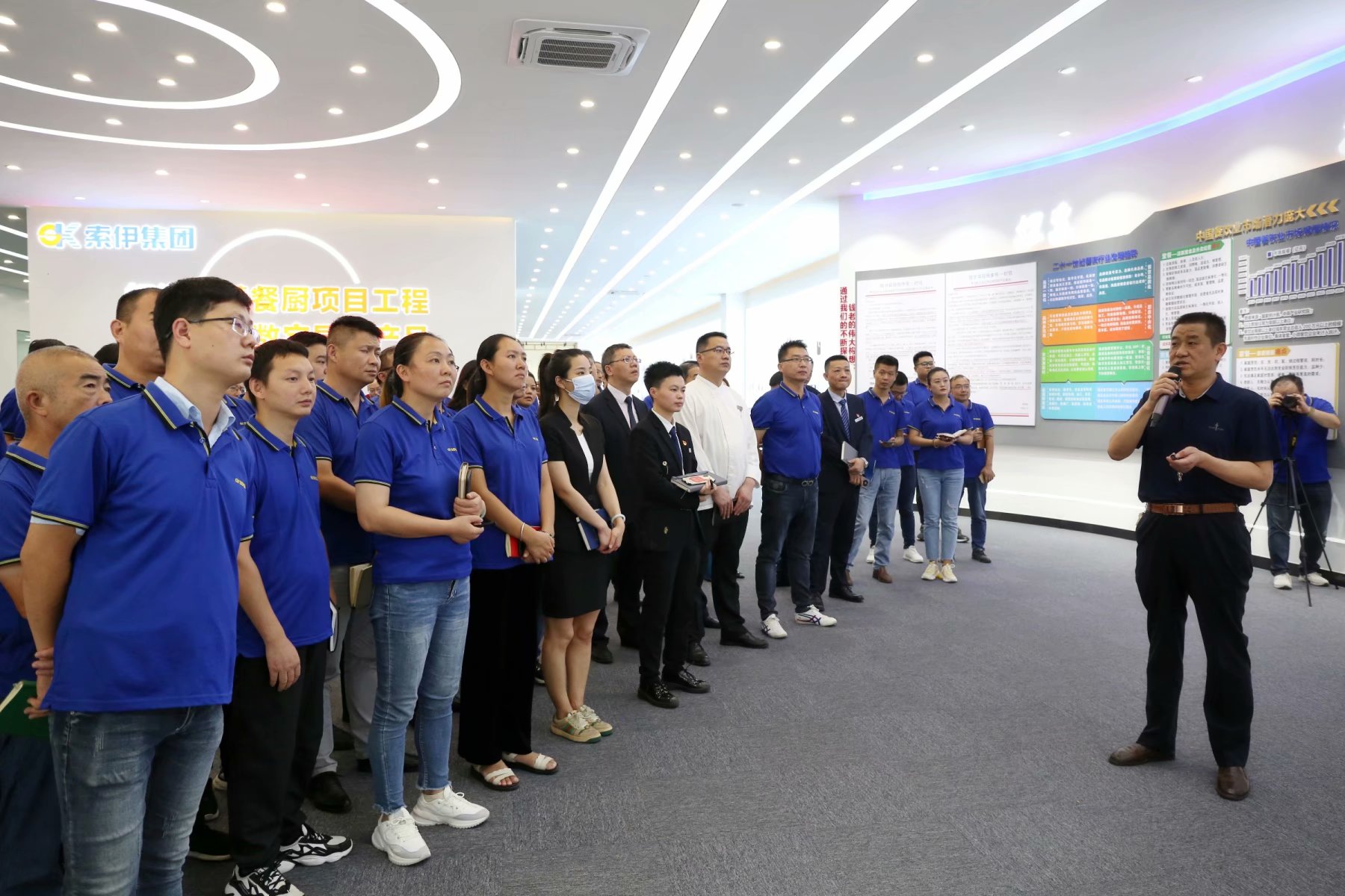 最后來到了剛剛新建的轉(zhuǎn)型展示廳,一進(jìn)展示廳,主背景墻上的二行紅白鑲嵌的發(fā)光大字——“打造智慧餐廚項(xiàng)目工程,制造智能數(shù)字廚電產(chǎn)品”,顯得特別醒目,也突出了此展示廳的核心功能。王董事長從索伊集團(tuán)的成立講起,二十多年來,索伊集團(tuán)走過風(fēng)雨,走過輝煌,曾創(chuàng)造了家電下鄉(xiāng)期間索伊冰箱全國銷量第六名,位列民營企業(yè)前茅的奇跡。從2012年以后,企業(yè)不斷地探索,堅(jiān)持走升級轉(zhuǎn)型之路,通過多年的探索,最終確定以“智慧餐廚項(xiàng)目工程”為核心的發(fā)展方向,以“智能化數(shù)字廚電新產(chǎn)品”研發(fā)、制造和應(yīng)用為核心打造智能化數(shù)字化產(chǎn)業(yè)集群,最終把錢學(xué)森在1995年提出的“烹飪工業(yè)化將出現(xiàn)在21世紀(jì)中國的第六次產(chǎn)業(yè)革命中”這一偉大構(gòu)想,通過索伊不斷的探索變成現(xiàn)實(shí)。王董事長也道出了探索的過程是漫長的,也是艱辛的,五年中企業(yè)尋找、洽談了100多個(gè)產(chǎn)業(yè)項(xiàng)目,最終創(chuàng)造性地總結(jié)出,隨著第四次工業(yè)革命到來,企業(yè)要想升級轉(zhuǎn)型,持續(xù)高速發(fā)展,必須具備八大要素,同時(shí)要選擇以四大“午陽”產(chǎn)業(yè)為發(fā)展方向。通過分析了家餐、堂餐、團(tuán)餐的現(xiàn)狀和痛點(diǎn),創(chuàng)造性提出了二十一世紀(jì)餐飲行業(yè)發(fā)展的八化趨勢,即“餐飲品牌化、廚房中央化、消費(fèi)智能化、應(yīng)用廣泛化、品質(zhì)一致化、品種多元化、食安溯源化、運(yùn)營標(biāo)準(zhǔn)化”,可謂是戰(zhàn)略眼光,思維超前,總結(jié)精辟,指導(dǎo)性強(qiáng),可操作性強(qiáng)。更神奇的是王董事長的創(chuàng)舉與科學(xué)家錢學(xué)森的構(gòu)想不謀而合,并且實(shí)現(xiàn)了錢老的預(yù)言,這不得不說是一個(gè)神化。