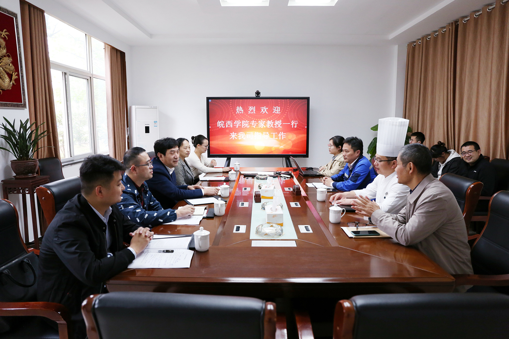 2021年10月11日下午,皖西學院生物與制藥工程學院副院長陳乃東等四位教授蒞臨安徽索伊集團,開展中央廚房食品保鮮技術交流并進行指導。索伊集團董事長王瓊峰、董事長助理倪曙東、云餐公司總經理孫玉勝等高層領導及相關工作人員全程參與。此次會議主要圍繞中央廚房項目半成品食物保鮮技術等話題展開討論。