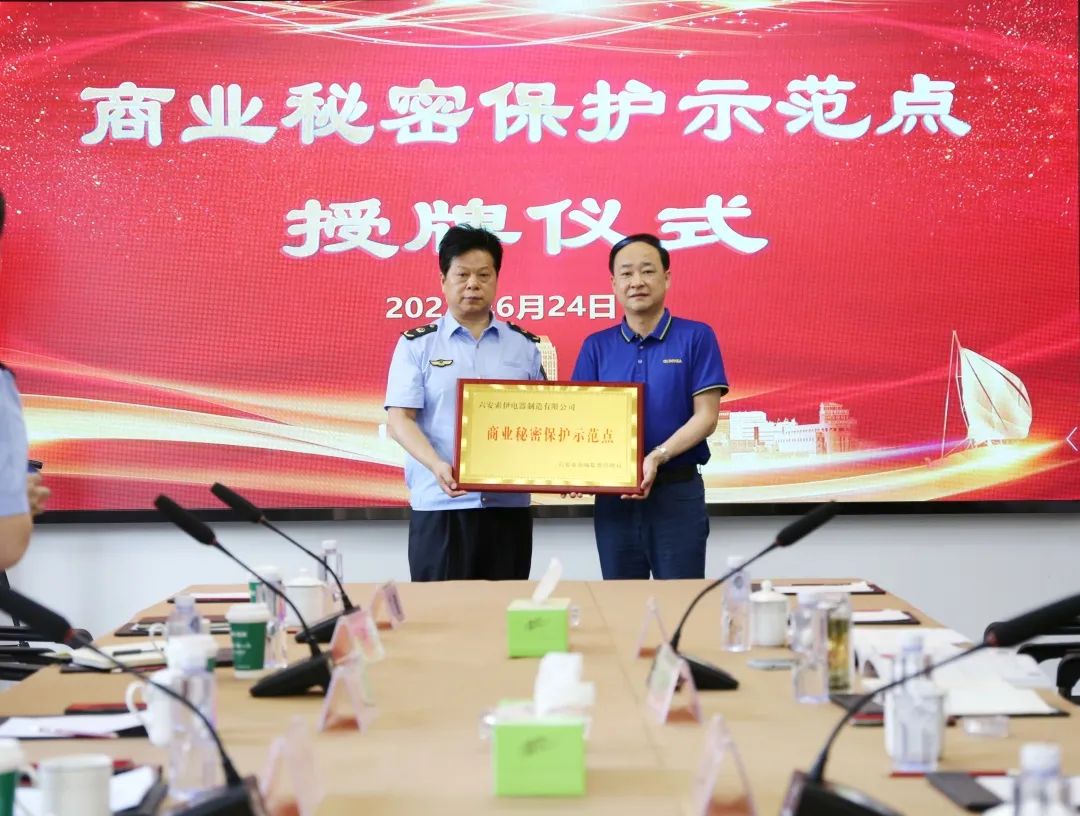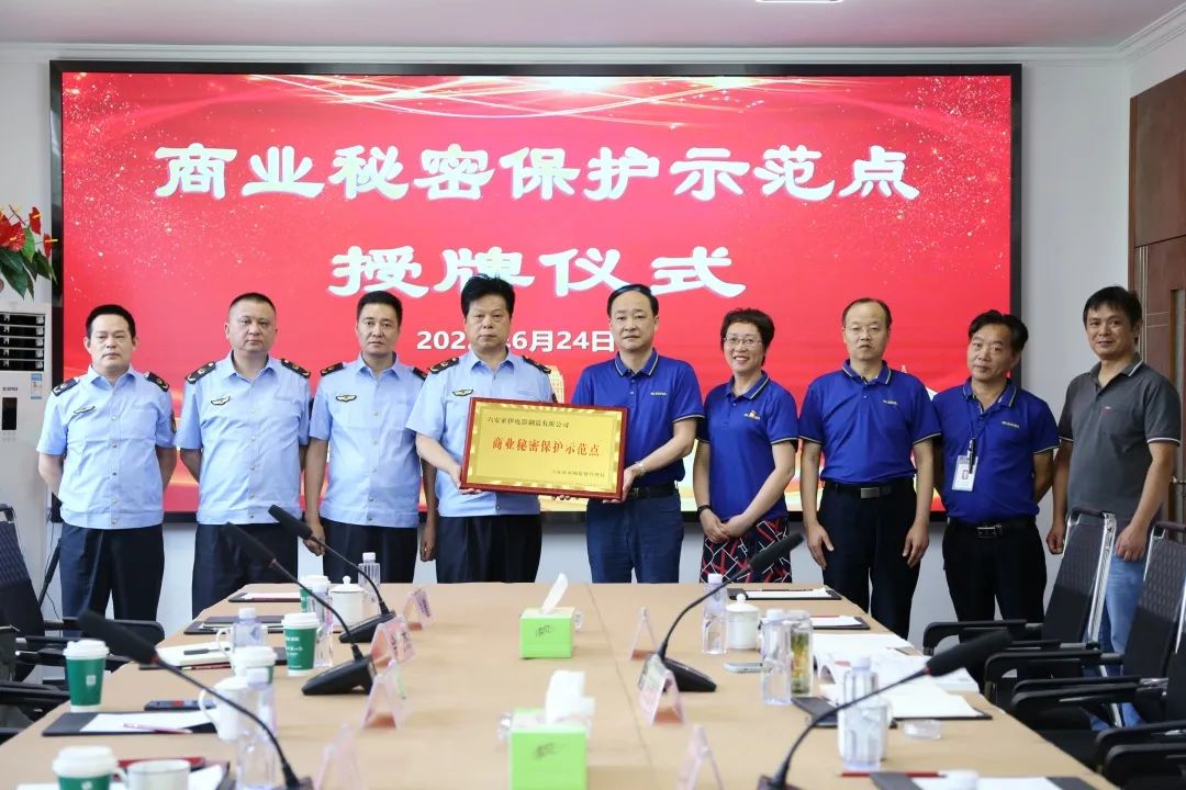 2022年6月24日,六安市市場監(jiān)督管理局向六安市首批商業(yè)秘密保護(hù)示范企業(yè)授牌。索伊公司商業(yè)秘密保護(hù)示范點(diǎn)創(chuàng)建工作通過驗(yàn)收,成為六安市首批商業(yè)秘密保護(hù)示范點(diǎn)。市市場監(jiān)管局二級(jí)調(diào)研員韓勇、開發(fā)區(qū)市場監(jiān)管分局局長袁紅軍及相關(guān)業(yè)務(wù)科室負(fù)責(zé)人、集團(tuán)董事長助理倪曙東、公司副總許必鋒、黨委書記汪顯華參加授牌儀式。