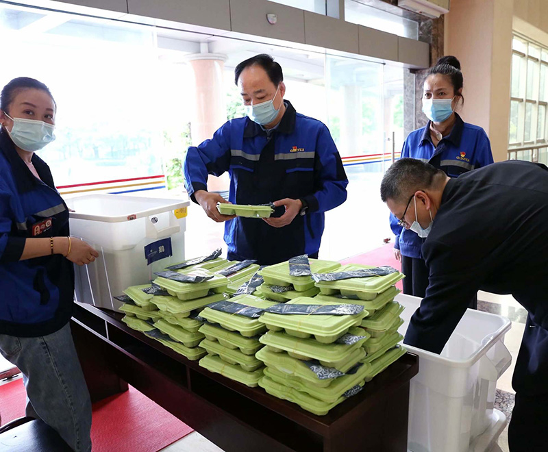 安徽索伊集團作為開發區的龍頭企業,也時刻不忘履行企業的擔當和責任,當公司領導得知廣大醫務工作者奮戰在一線,有的連飯都顧不上吃時,主動向開發區領導請示,免費為轄區內的醫護人員和防疫工作者送上由六安索伊君瀾大酒店定制的愛心餐。