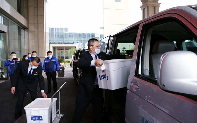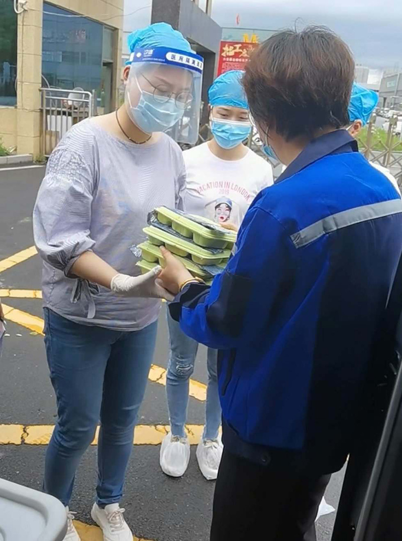 索伊集團領導班子辦事果斷,快速高效。從主動請纓到分裝配送僅僅只用了二個多小時的時間,1000份愛心餐出爐。2021年5月15日中午11:30,索伊集團董事長助理倪曙東、黨委書記汪顯華、索伊君瀾大酒店甲方代表劉杰帶領著集團的黨員志愿者們分別乘坐三部車,帶著近千份的智廚愛心餐前往轄區內的企業采集點、社區采集點、衛生服務站及醫護人員所住的大酒店進行發放,每到一處,都深深被醫務人員和廣大工作者的敬業精神所感動,他們放棄了休息日,加班加點,為轄區內的所有企業和居民進行核酸檢測,當索伊的黨員志愿者們把熱氣騰騰的愛心餐送到他們手上時,他們也連連說謝謝。從十一點半到十二點半,整整一個小時,索伊集團的黨員志愿者不辭勞苦,把愛心餐送到轄區內的二十多個采集點。