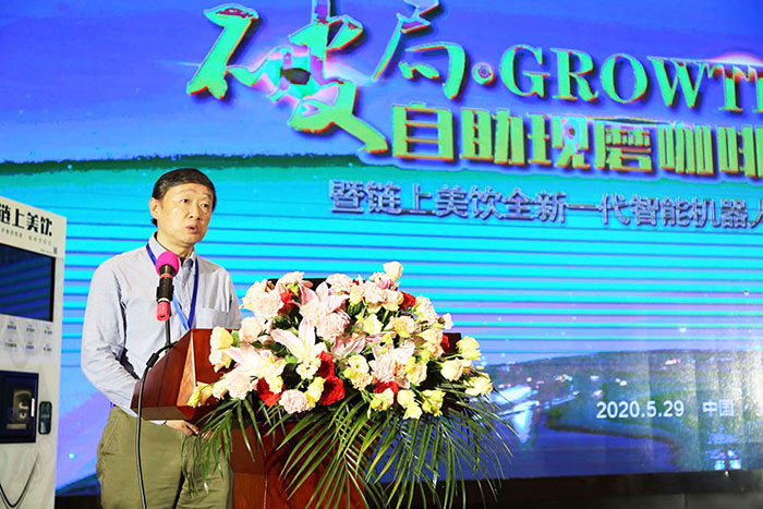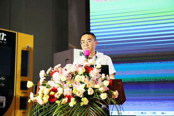 鏈上美飲咖啡飲料機銷售公司總經理鄭彬對會議政策進行解讀