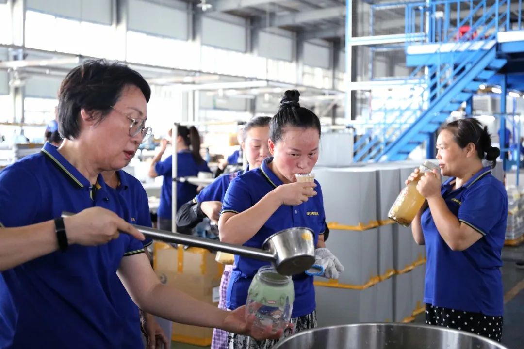上午十點鐘,為體現(xiàn)公司領(lǐng)導(dǎo)對廣大員工的關(guān)懷,公司董事長助理倪曙東、黨委書記汪顯華來到車間,不僅是看望大家,還為大家送來了清涼可口的綠豆湯。員工們非常的開心,笑著說“真是又熱又渴,這時候給我們送綠豆湯真是及時雨”,一杯又一杯,真是清涼又可口。