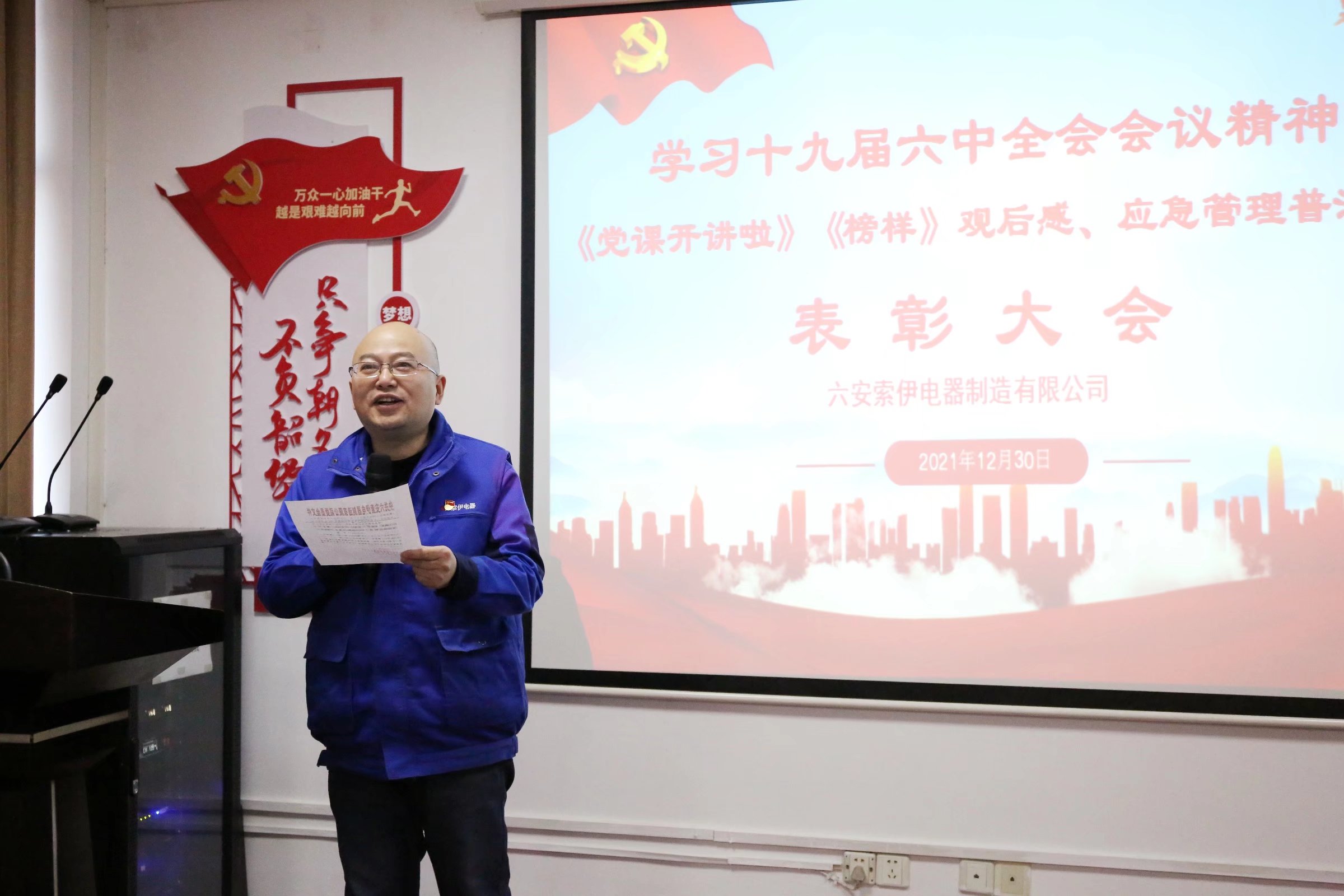 黨員大會共計有三項議程,索伊公司黨委書記汪顯華對2021年黨建工作進行了總結。并作了題為“總結黨的百年奮斗歷史經驗,繼續書寫民族復興偉大榮光”的十九屆六中全會精神的宣貫。從四個方面進行交流學習,首先是《決議》的時代背景和認識方法,黨建100年來共計出臺三個《決議》,每個決議都是在黨的重大歷史關頭產生的,三個《決議》實現了中華民族從站起來、富起來到強起來的偉大飛躍。其次就是黨的百年奮斗的四個歷史時期,分別是新民主主義革命時期,社會主義革命和社會主義建議時期,改革開放和社會主義現代化建設時期,中國特色社會主義新時代。這四個歷史時間實現三次飛躍,從毛澤東思想的建立到中國特色社會主義理論體系和習近平新時代中國特色社會主義思想,這四個時期進一步明確了什么是馬克思主義?怎樣發展馬克思主義?什么是社會主義?怎么建設社會主義?新時代建設什么樣的現代化強國?怎樣建設社會主義現代化強國?另外,新時代黨的理論創新和實踐成就,兩個“確立”的決定性意義。最后就是黨的百年奮斗的歷史意義和歷史經驗。總結為“十個堅持”,也就是進一步明確了時代是出卷人,我們是答卷人,人民是閱卷人,同時也講到中國共產黨是什么?中國共產黨要干什么?全體黨員通過學習,汲取力量,并紛紛表示對標工作,凝心聚力,完成公司2022年目標。