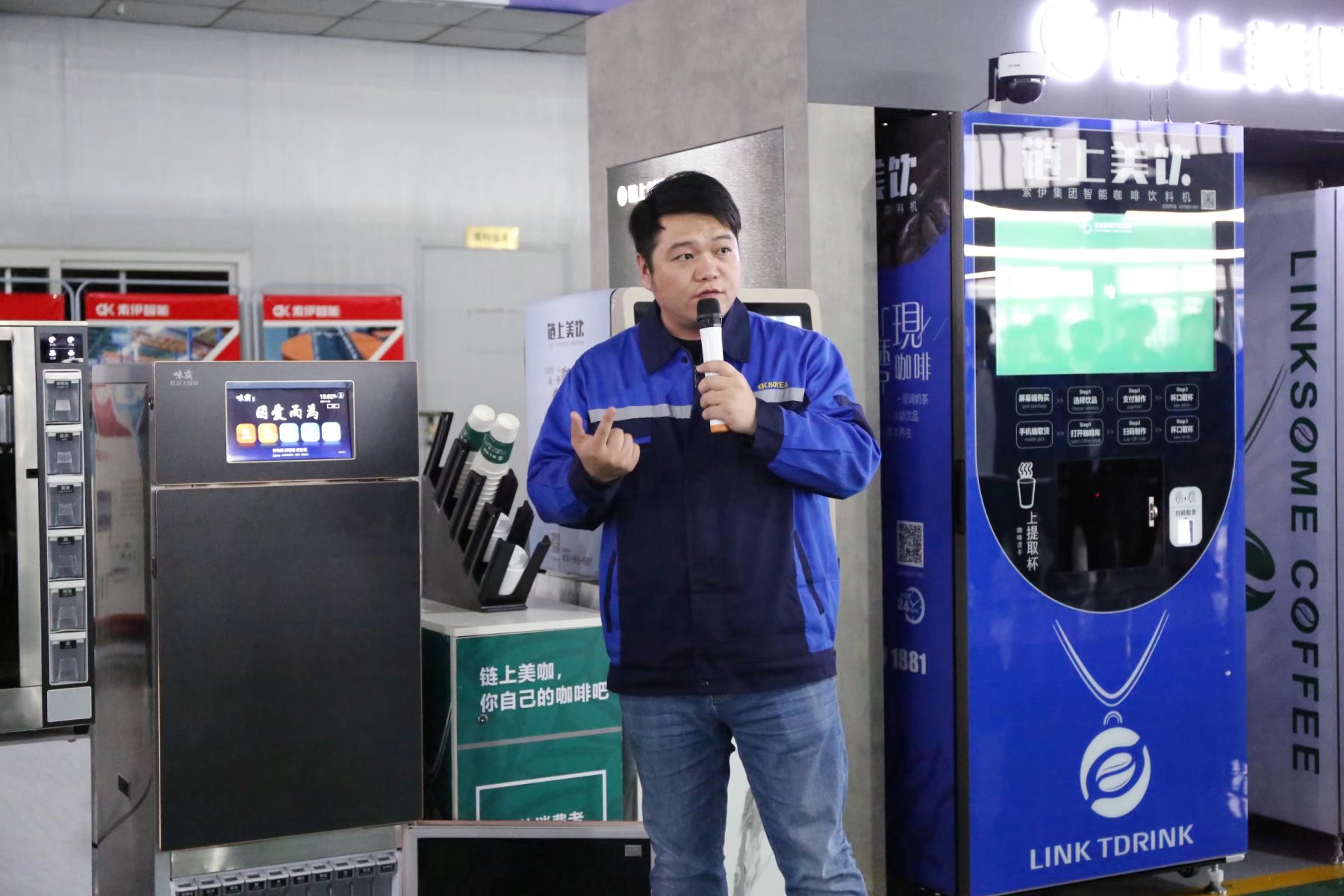 銷售部長方明洋介紹智能化數(shù)字烹飪機(jī)器人和智能化數(shù)字機(jī)器人飲料機(jī)等產(chǎn)品