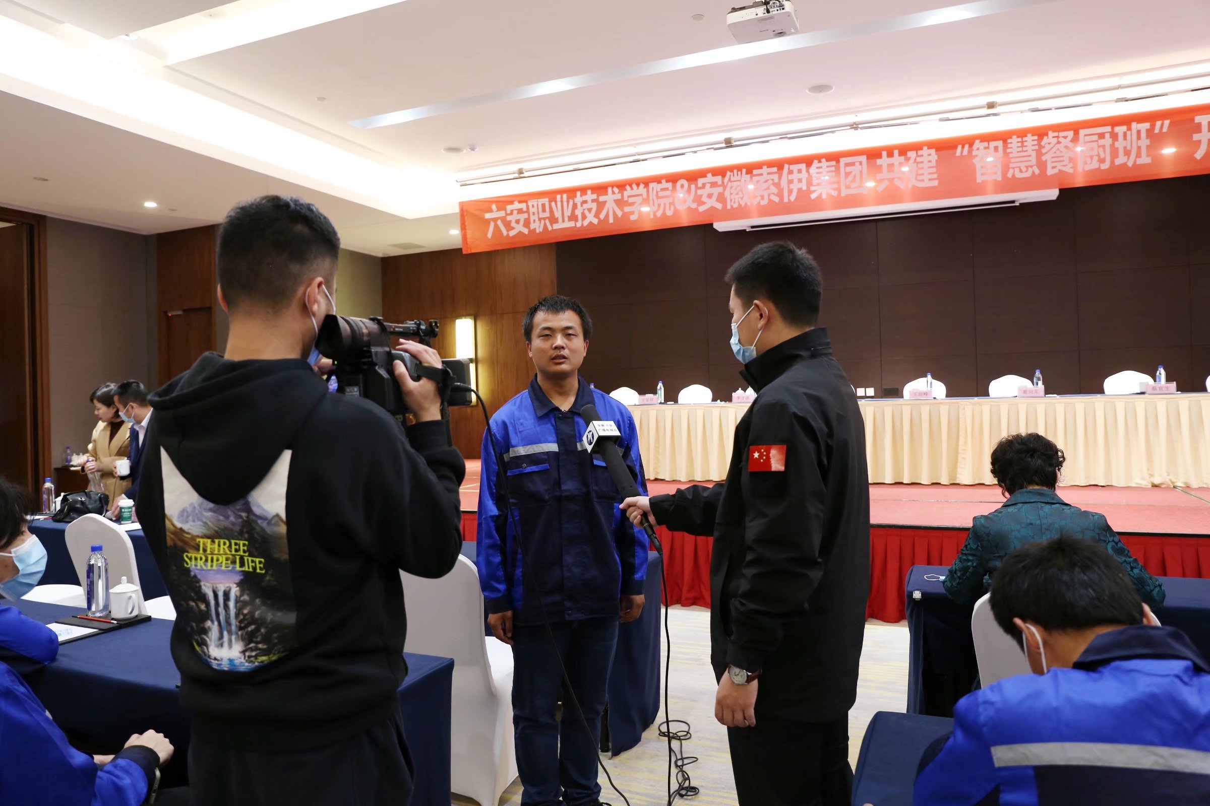 會后電視臺采訪智慧餐廚班學(xué)生張楊楊