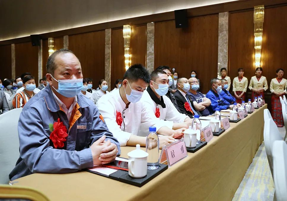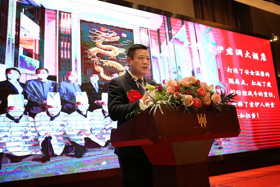 會上,全體參會人員共同觀看了索伊集團抗疫專題宣傳片《“疫”路風雨 “伊”路有你》;董事長助理倪曙東宣讀了安徽索伊集團表彰文件;云餐智慧物聯科技有限公司總經理孫玉勝、索伊君瀾大酒店總經理張雷分別代表先進集體上臺發言,索伊電器制造有限公司安環處處長張嘯、索伊君瀾大酒店智廚主管戚玲代表先進個人上臺發言。集團領導和部門領導先后為3個先進集體和17位先進個人進行現場頒獎。
